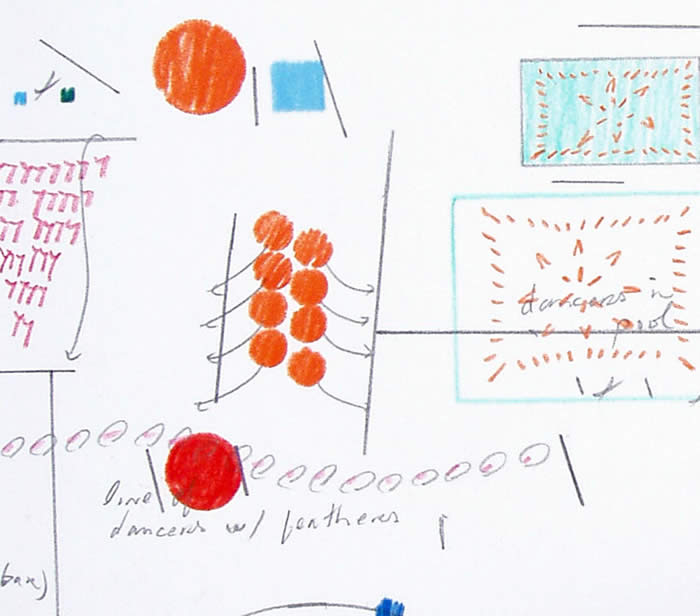 Brian Lund, "Combined Edit Cuts Featuring Sweet Charity and Wall Street #2", (detail), 2009, Graphite and colored pencil on paper, 50 x 38 inches.