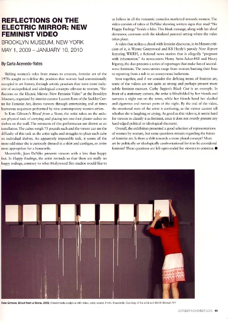 Art Pulse Magazine, "Reflections on the Elextric Mirror: New Feminist Video", by Carla Acevedo-Yates, October/November 2009.