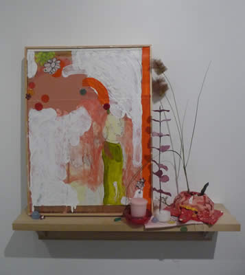 wood, wood, acrylic, fabric, ink, pencil, collage, candles,