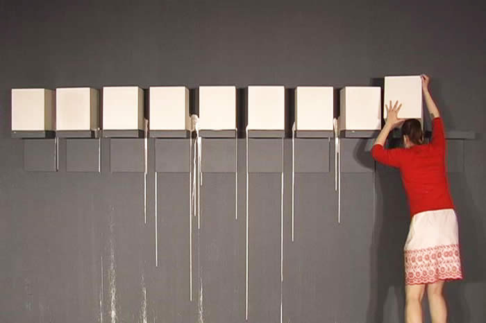 Kate Gilmore, "Blood from a Stone", 2009, video, color, sound. 8 minutes, 9 seconds.