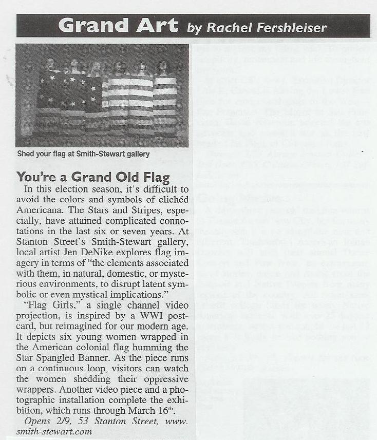 Grand Street News, "You're a Grand Old Flag", by Rachel Fershleiser, pg. 16.